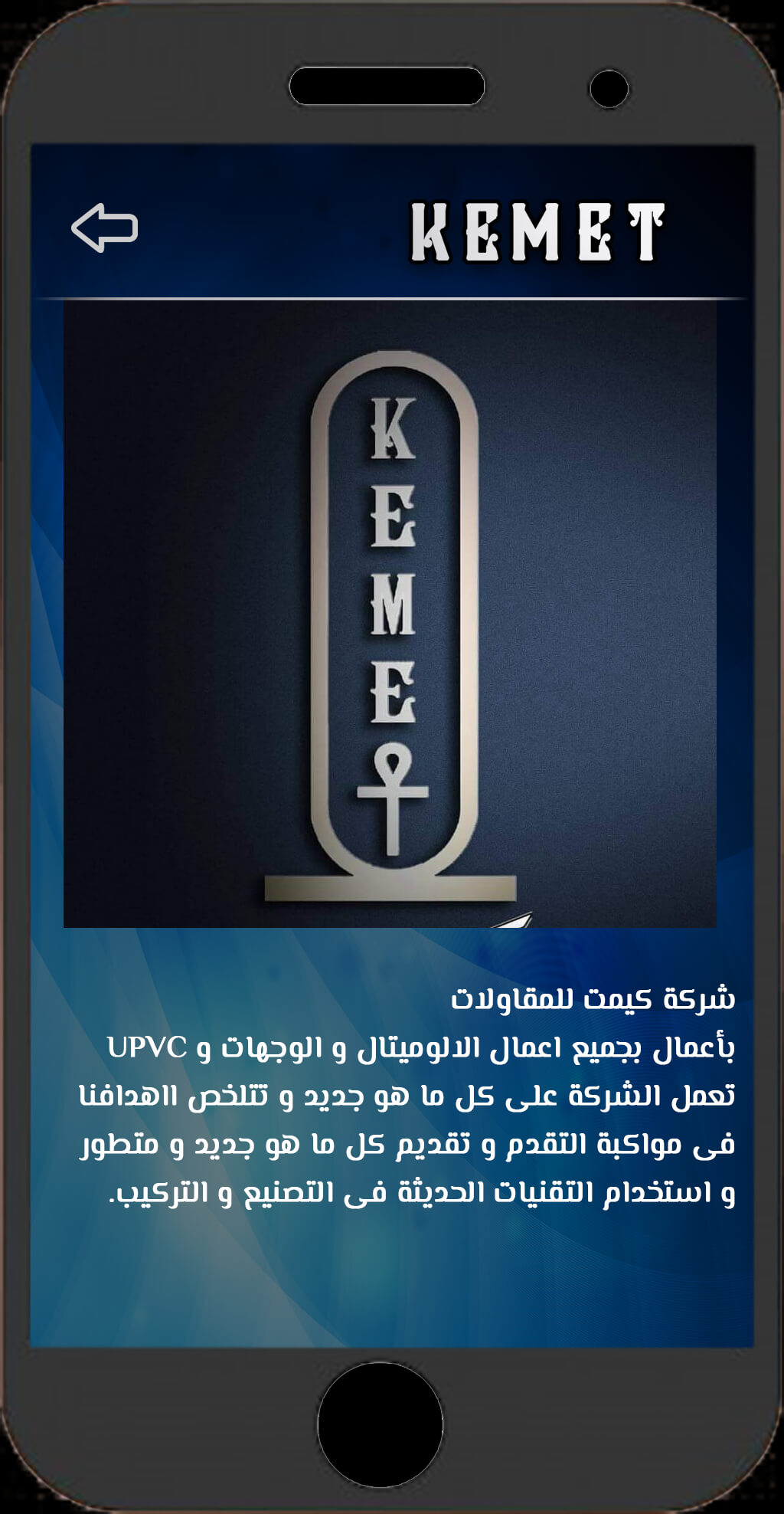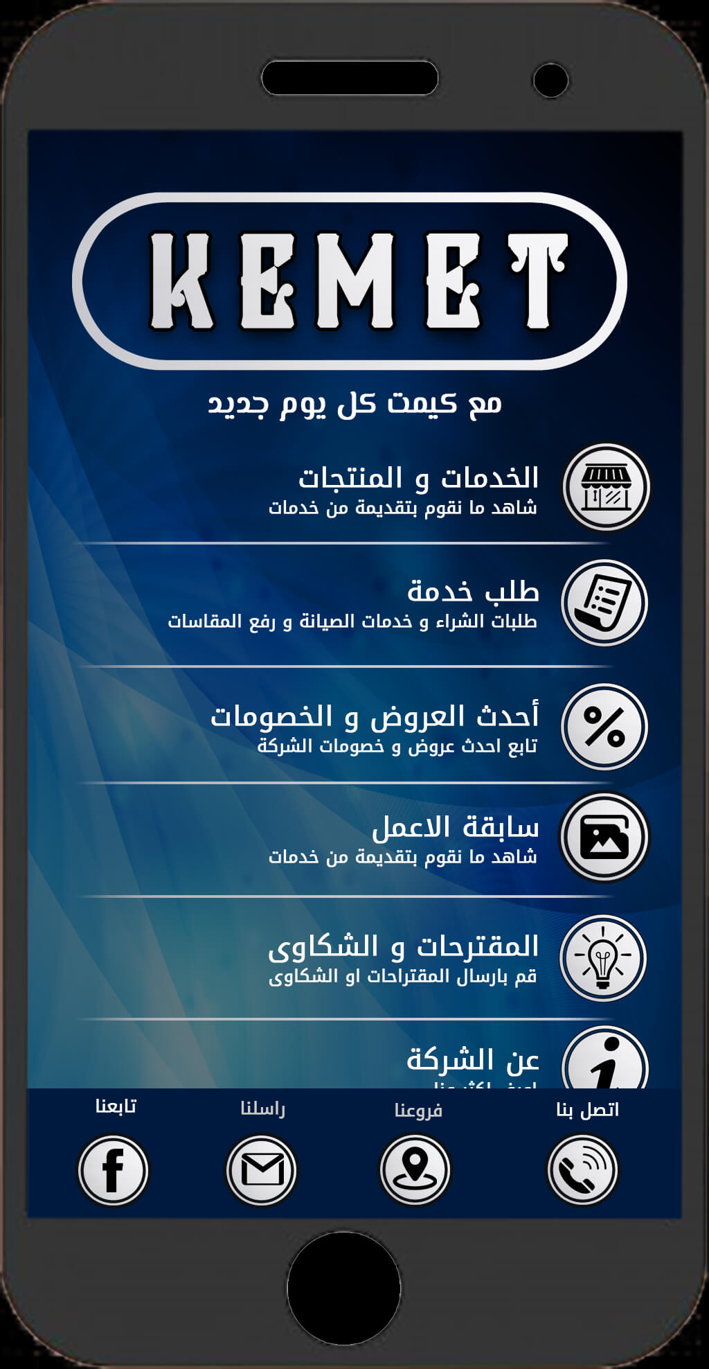 Mobile Application For Kemet Construction & Interiors With Control Panel contains : 1- Company Products. 2- Company Services. 3- About Company. 4- Contact us + Connect from the application. 5- Branches of the company + Google map for each branch. 6- Send an email. 7- Follow us through the website and the accounts of the Social Media (Facebook - Instagram - .......). 8- Previous Work (portfolio) . 9- Send Notifications to users with Control panel. 10- Receive Messages and Requests Raise Sizes On The Control Panel. 11- Application Can Be Edited With Control Panel .