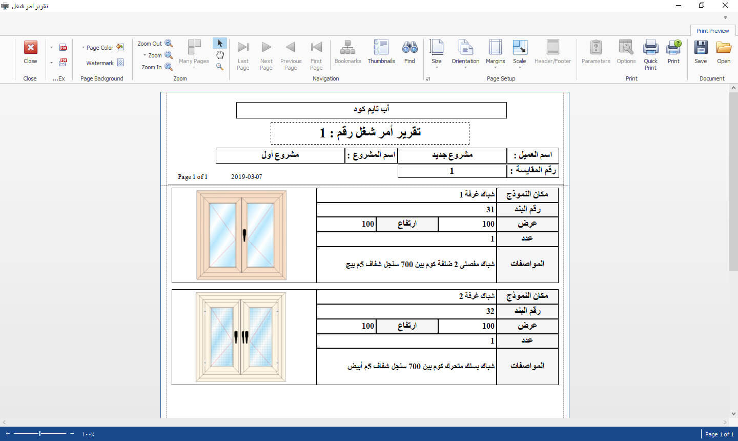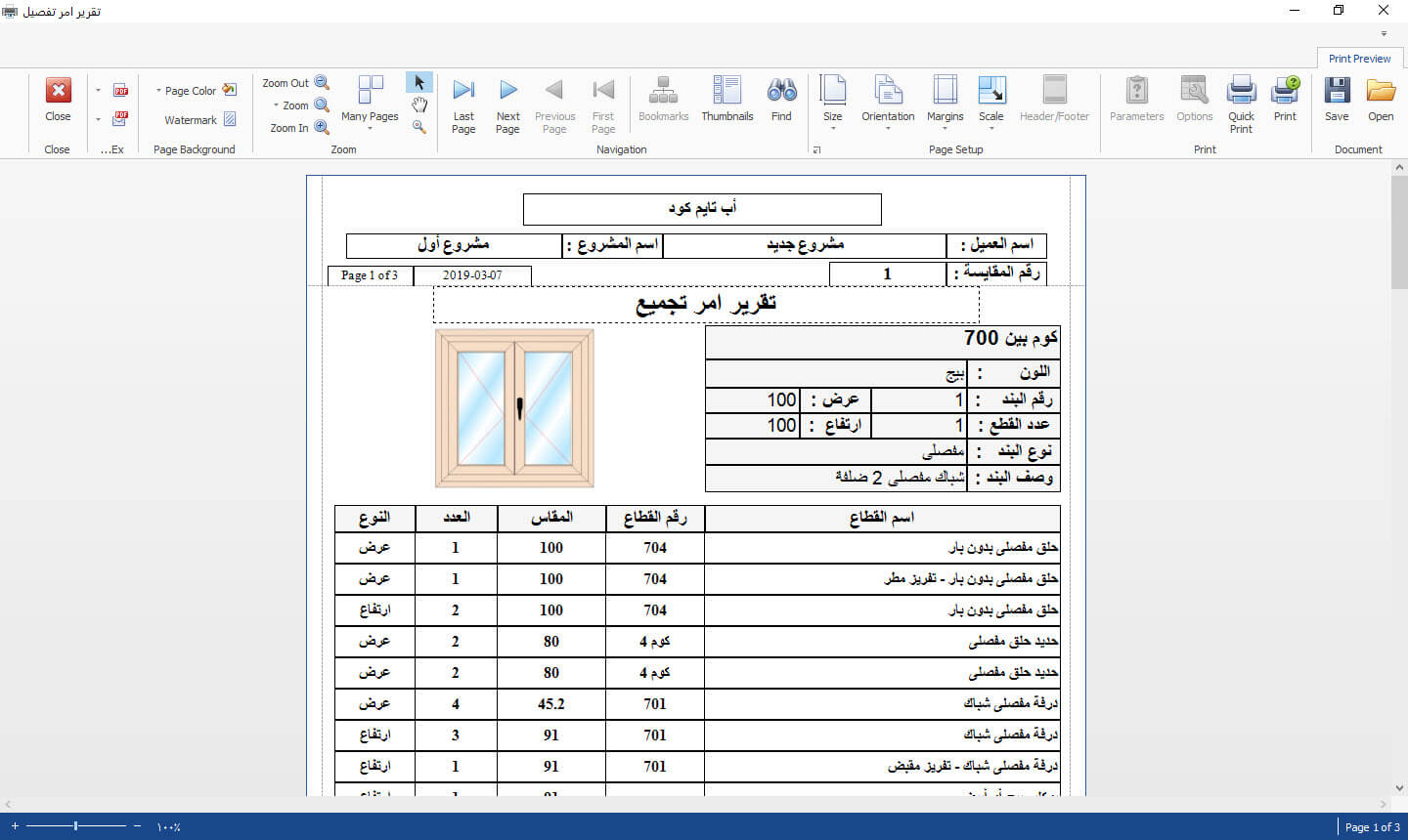 تقرير تجميع تفصيلي بالمقاسات (قطاعات - حديد - زجاج) | ||