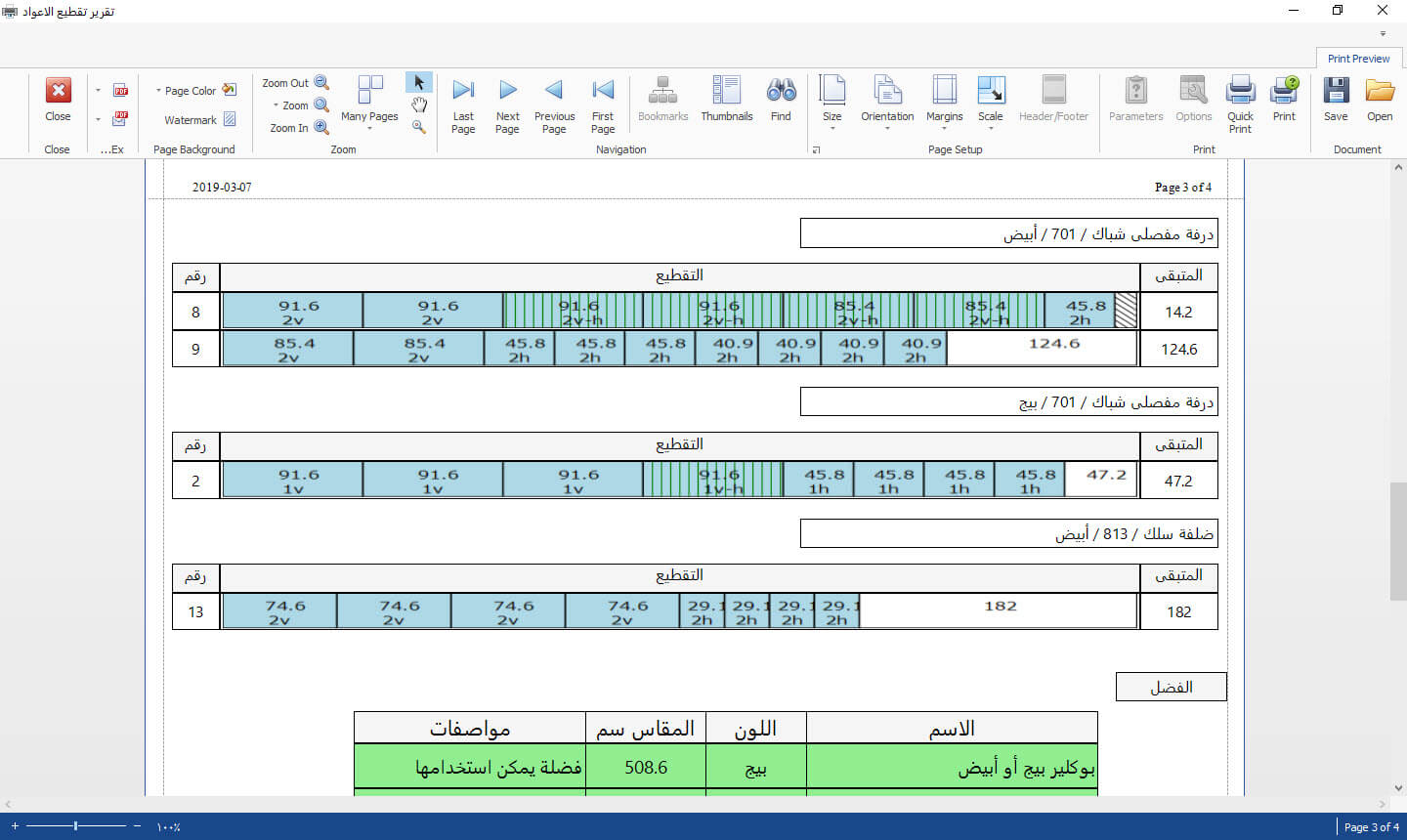 طباعو صور المقايسة وتقرير بإجمالي الأمتار المستخدمة | ||